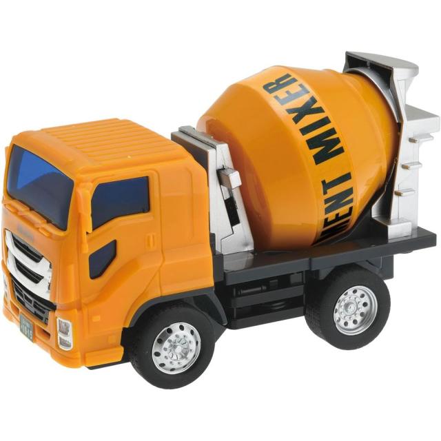 ギガミニシリーズがモデルチェンジして登場! レバー操作でミキサーが回ります。後ろのスロープも回ります。フリクション走行でグングン走ります。