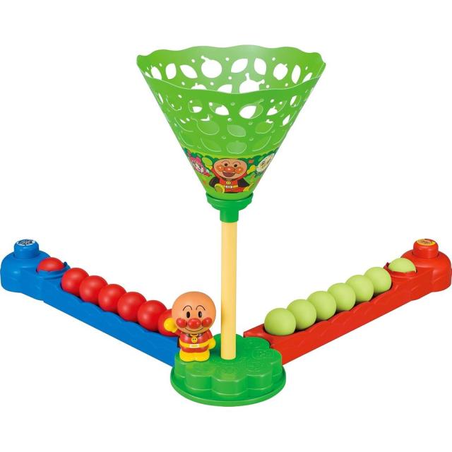 セット内容:カゴ、カゴ固定具、カゴ台座、支柱、ボール×14(赤玉×7、黄緑玉×7)、玉置き×2、玉打ち出し部×2、アンパンマン人形
