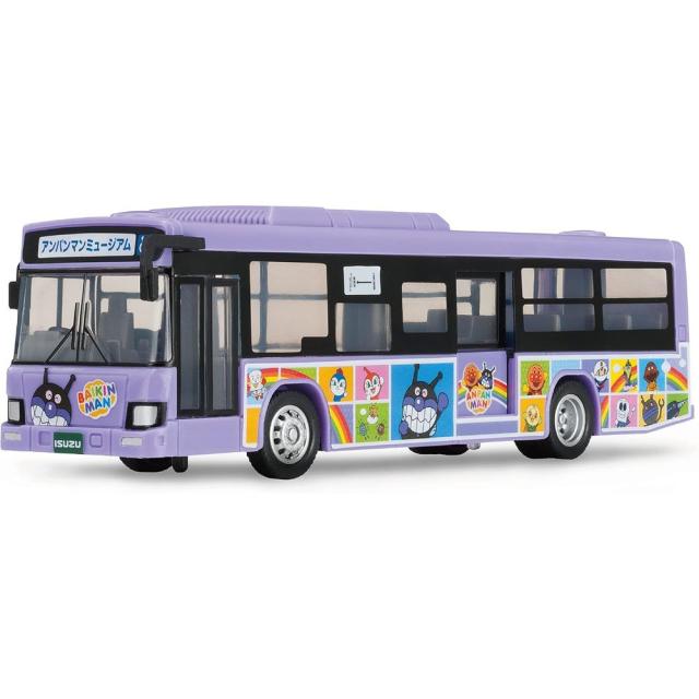 ●アンパンマン列車が走る土讃線土佐山田駅から高知にあるアンパンマンミュージアムまで走っている、アンパンマンと仲間たちが楽しく描かれたバスのミニカーです。
