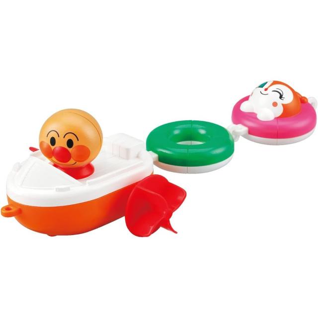 お風呂に浮かべて遊べるアンパンマンのボートと浮き輪のバストイです!ボートにドキンちゃんや浮き輪をつなげて遊べます!アンパンマンをまわすとゼンマイでボートが前に進みます。