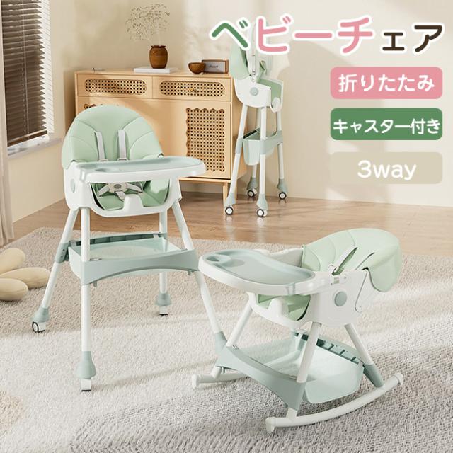 ベビーチェア 子供用 折りたたみ3way ロッキングチェア 赤ちゃん 椅子 持ち運び ハイチェア ローチェア イス キッズ テーブル 幼児 屋内 屋外 離乳 キャスター付き