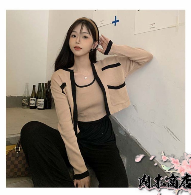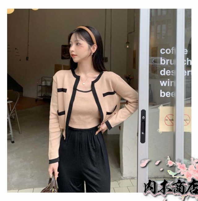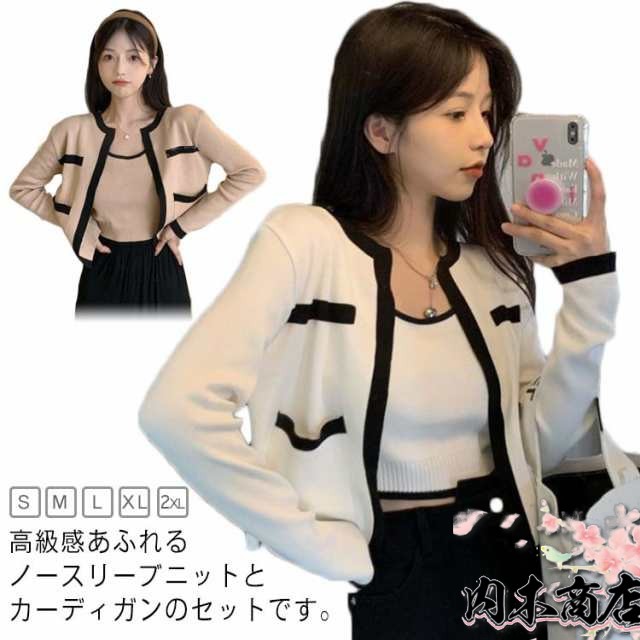 アンサンブル カーディガン カーディガン レディース 長袖 ニットカーディガン クルーネック 二の腕カバー 2点セット キャミソール ノースリーブニット おしゃれ ショート丈