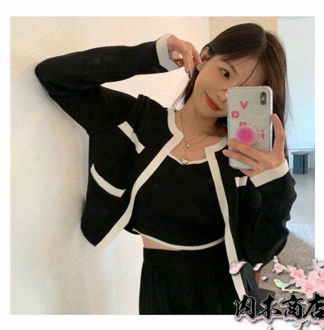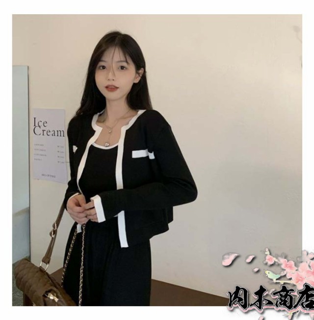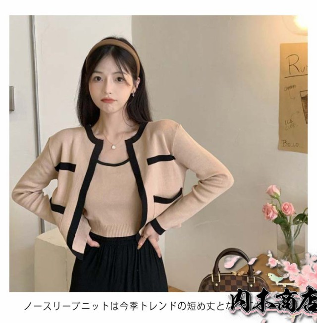 数量限定入荷 おしゃれ 二の腕カバー レディース 生活快適特集 ギフトにも最適 クルーネック 収納便利 ノースリーブニット SNS話題 カーディガン アンサンブル 長袖 ニットカーディガン キャミソール ショート丈 2点セット 送料無料 クリスマス 冬物