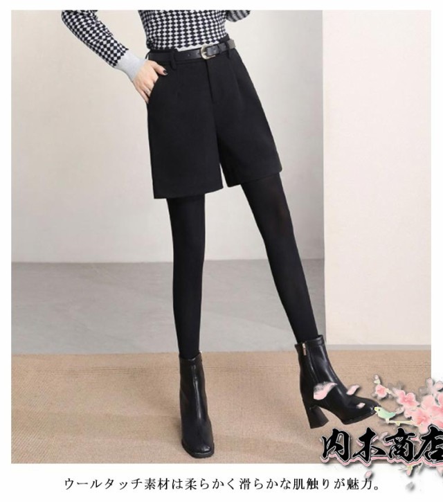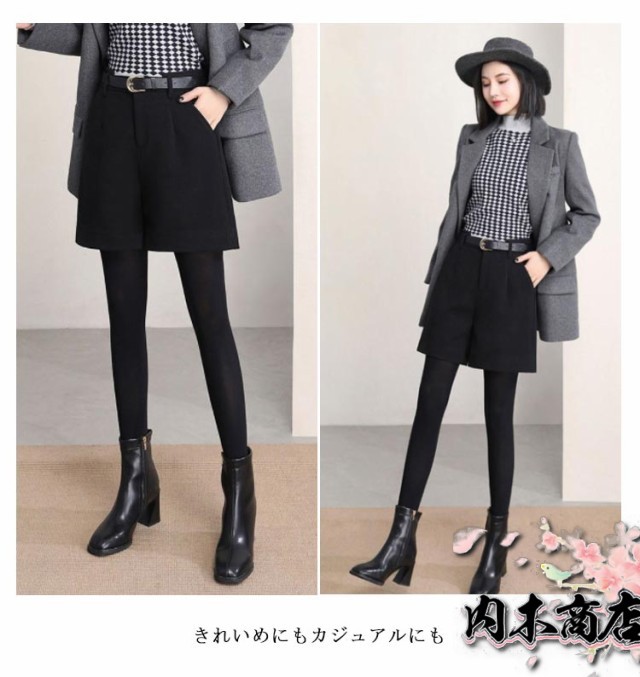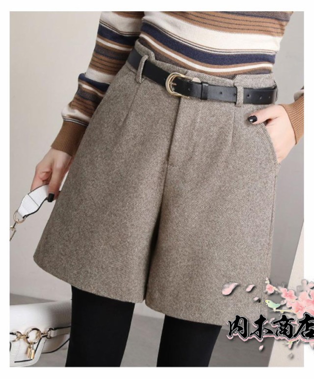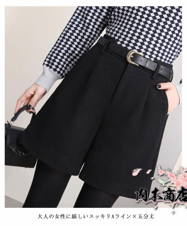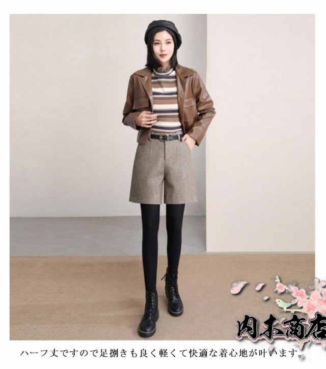 シンプル レディース ハーフパンツ ウールタッチ ワイドパンツ キュロットパンツ 暖かい 薄っすら起毛 秋冬 フェイクウール ショートパンツ 短パン 膝丈 ハーフ丈 無地 半ズボン 五分丈 パンツ 厚手 大人 可愛い カジュアル 大きいサイズ 春 秋 冬