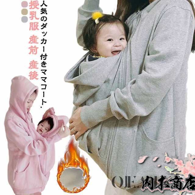 即納OK シンプル 授乳服 多機能 防寒 SNS話題 産前 マタニティ 可愛い ダッカー付き 裏起毛 マタニティウェア パーカー 抱っこ 抱っこ紐パーカー 秋冬 あったか おんぶコート ママコート 大きいサイズ パパも使える 産後 フード付き 在庫わずか