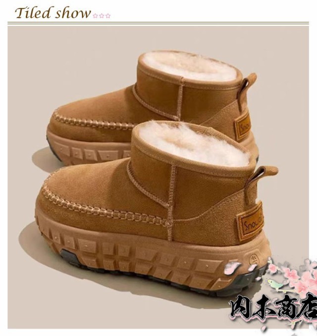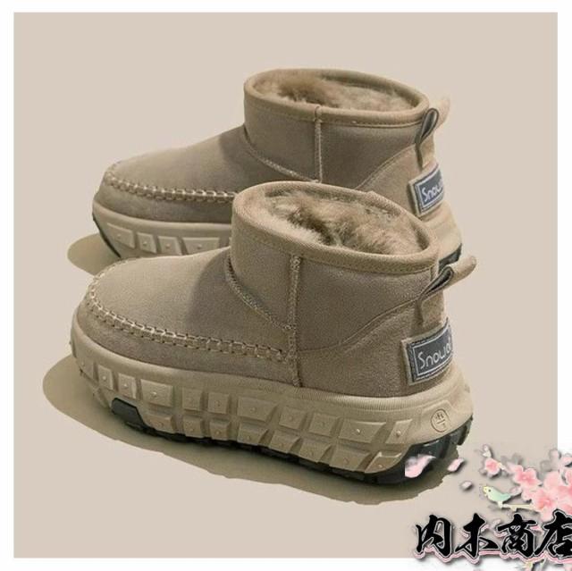 インヒール 防寒 裏ボア ムートンブーツ ブーツ レディース 22.5-25cm ゆったり ショートブーツ スノーシューズ 厚底5cm スエード ショートブーツ 保温 ムートンブーツ 裏起毛 裏ボア PU皮革 ボアシューズ 防寒 レディース フラットシューズ ローカット シンプル 冬用