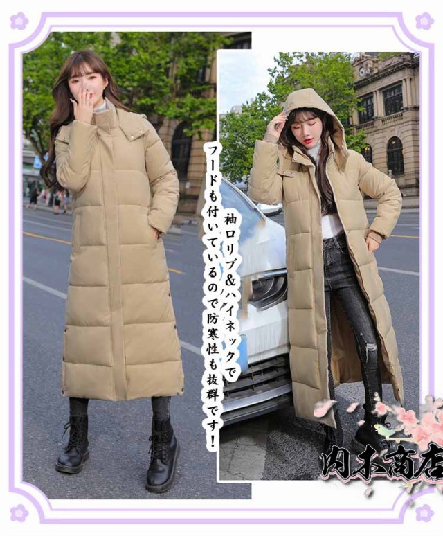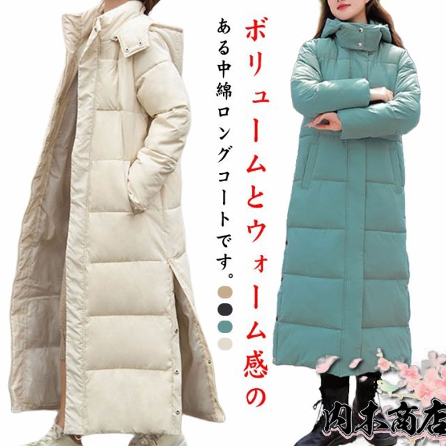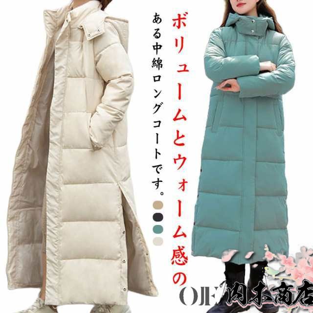 おしゃれ 通勤 通学 軽量 防寒 中綿コート アウター ロング 中綿 コート ファイバーダウンコート 膝下丈 ベンチコート あったか サイドボタン 冬 フード付き ロングコート エコダウンコート 厚手 秋 リブ袖口 ボリュームネック 韓国風 無地 防寒対策