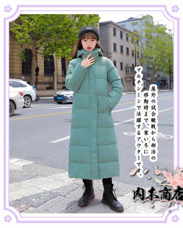 | ボリュームとウォーム感のある中綿ロングコートです。 なデザインで、116ー120cmの着丈が膝下まで守る防寒力と、カジュアルスタイルにも合わせやすいシルエット。 袖口リブ&ハイネックでフードも付いているので防寒性も抜群です! 中綿がたっぷり入っており、真冬のスポーツシーンやお出かけに最適なアイテム。 屋外の試合観戦から部活の移動時まで、寒い冬にマルチシーンで活躍するアウターです。 | |