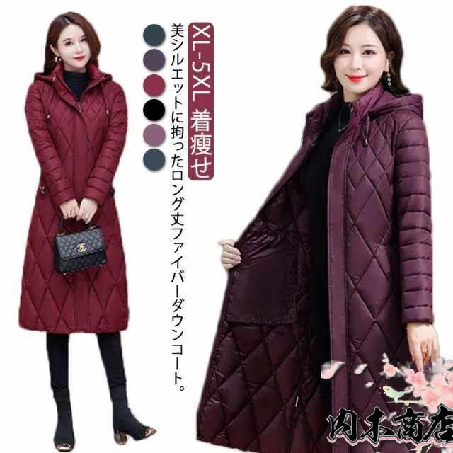 軽量 細身 ダウンコート ハイネック コート フード付き キルティング 中綿 冬コート スリム 着?せ ファイバー レディース ファイバー ロング ロングコート アウター 防寒 保温 あたっか 無地 きれいめ 大人 カジュアル 30代 40代 50代 大きいサイズ