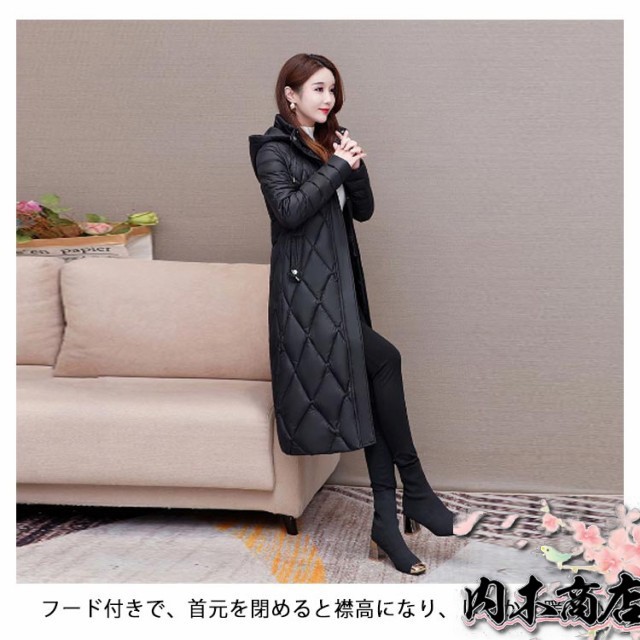 即納OK 売上急増中 レディース 軽量 防寒 30代 ロング スリム ハイネック 着?せ きれいめ 無地 ロングコート 保温 冬コート 50代 コート カジュアル アウター キルティング フード付き 40代 大人 あたっか 細身 中綿 ファイバー あったか