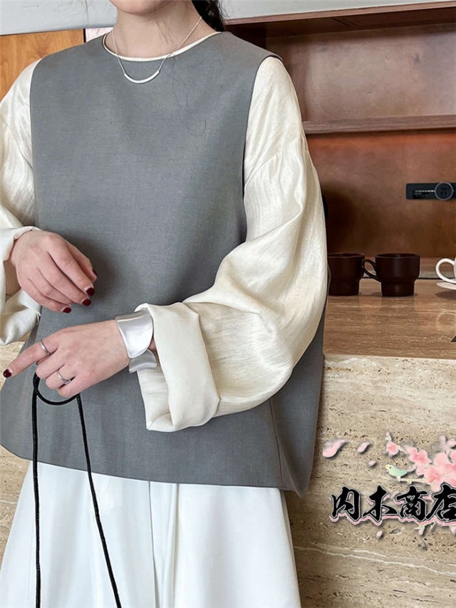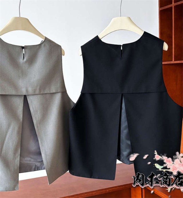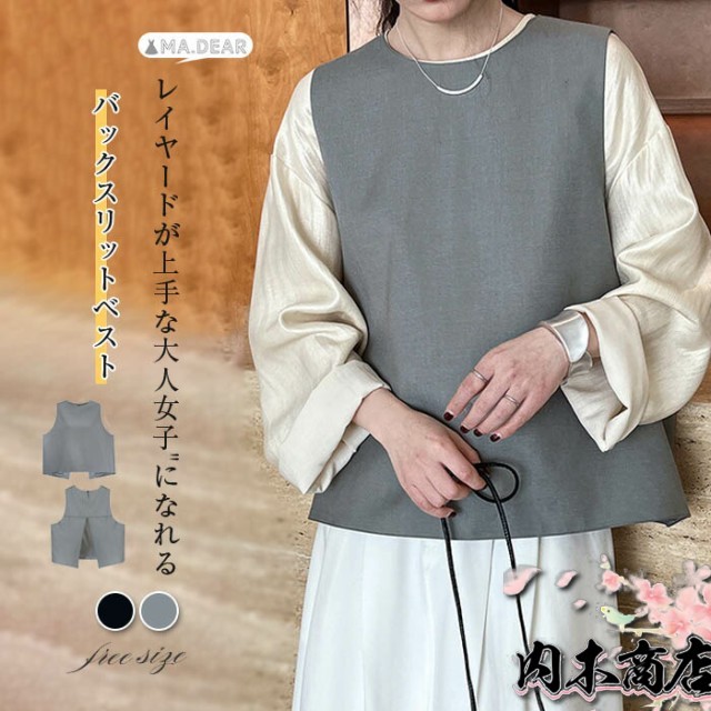 ベスト レディース 春 秋 冬 バックスリット クールネック プルオーバー 上品 きれいめ オシャレ フォーマル ファッション おしゃれ トップス 着回し 重ね着 レイヤード 通勤 オフィス 仕事 シンプル 定番 30代 40代 50代 黒 ブラック グレー 送料無料