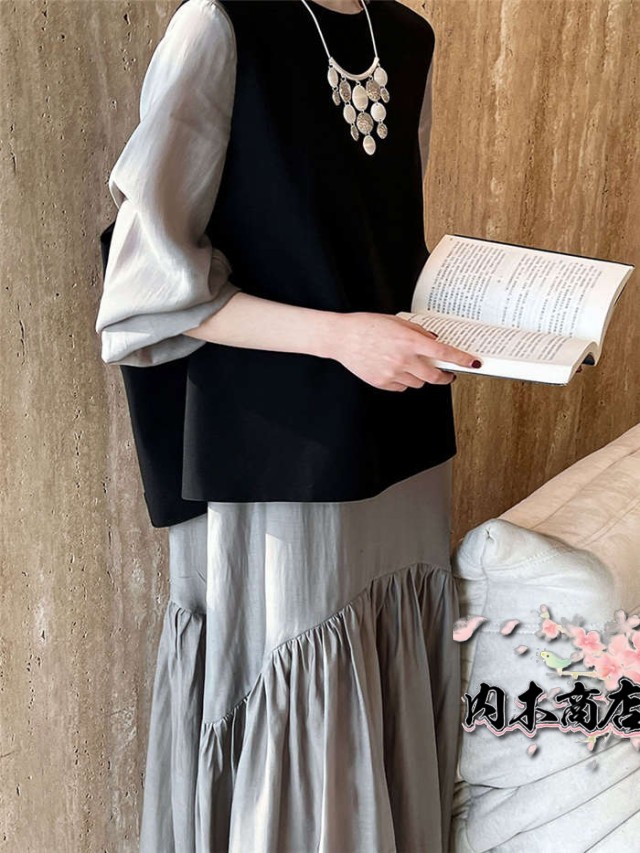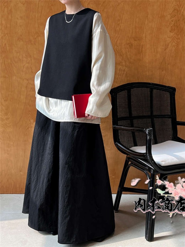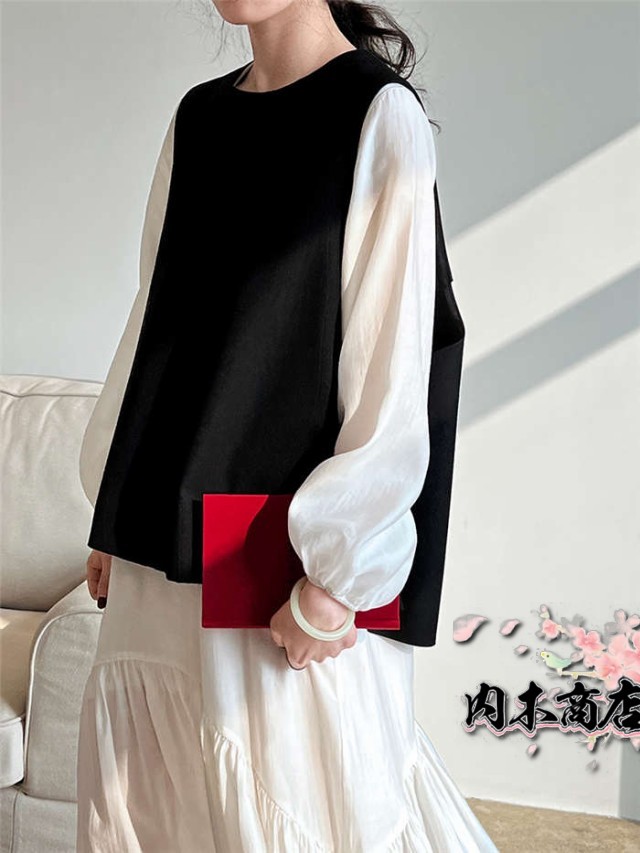 おしゃれ シンプル ブラック レディース 通勤 オフィス ベスト 春 秋 冬 バックスリット クールネック プルオーバー 上品 きれいめ オシャレ フォーマル ファッション トップス 着回し 重ね着 レイヤード 仕事 定番 30代 40代 50代 黒