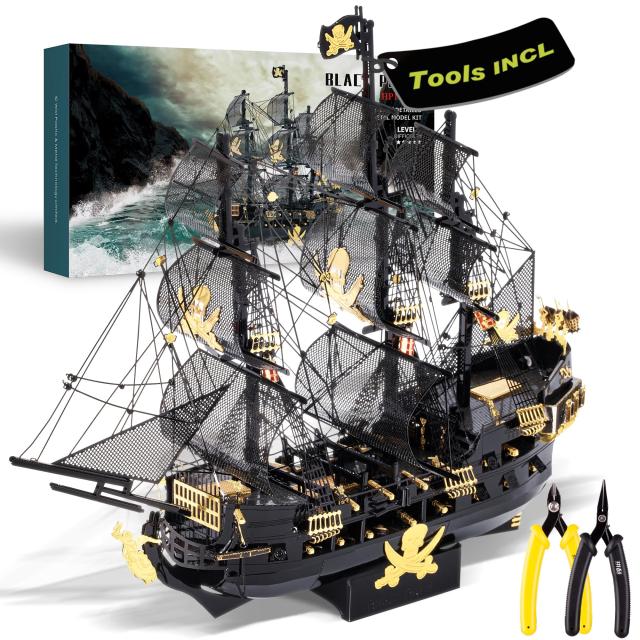 Piececool(ピースクール) 立体パズル 金属製 ブラックパール号&工具セット 帆船 海賊船 メタリックナノパズル 3dパズル 組み立て必要 工