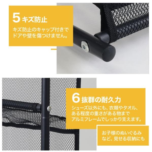 靴のキャビネットは10層の鋼管があるので、メッシュ部分がピンと張り、安定感があります。