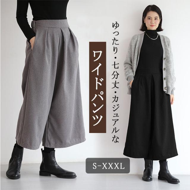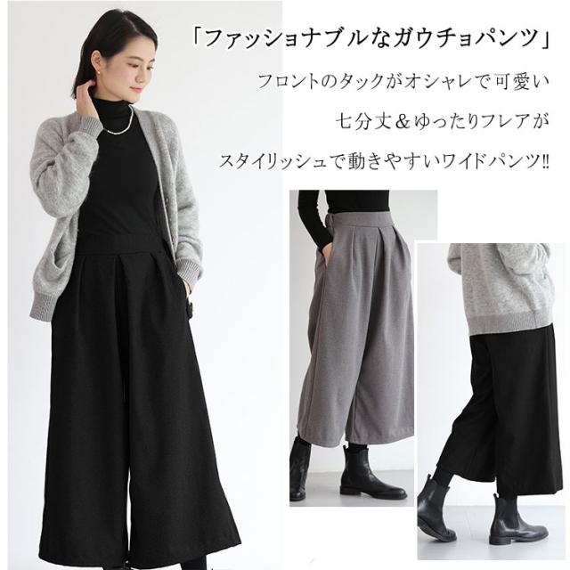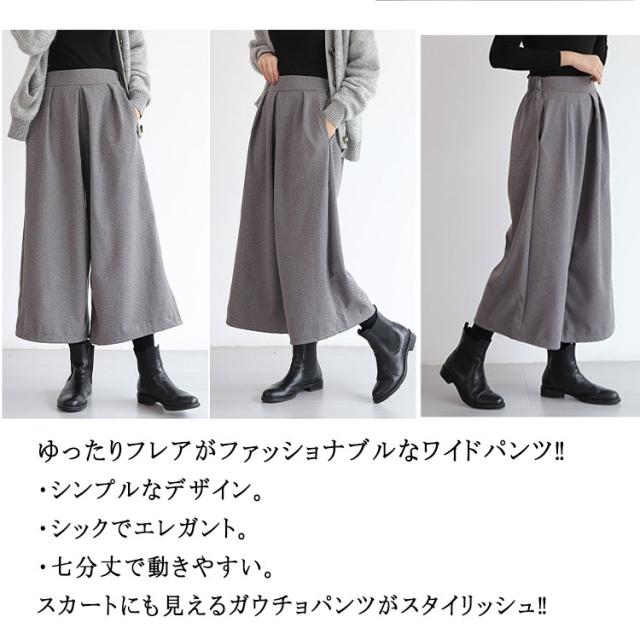 パンツ ワイドパンツ 七分丈 ガウチョパンツ レディース フレア タック キュロット フレアパンツ 送料無料 カジュアル ボトムス すね丈 動きやすい ゆったり 体型カバー 太ももカバー 可愛い スカーチョ カジュアル フェミニン シック プレゼント