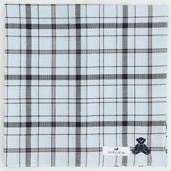 ベーシックで使いやすいチェックにテディベアのアイコンを刺繍したハンカチーフです。