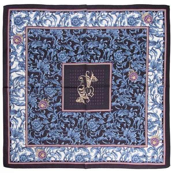 アクアスキュータム 大判 綿シルク プリントハンカチ クレストモチーフ【Aquascutum】