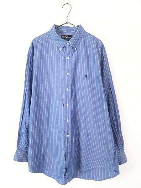 古着 90s Ralph Lauren 「YARMOUTH」 水色×白 ストライプ BD シャツ 17 1/2 古着