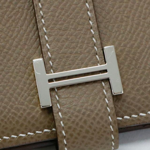 【SAランク】 エルメス HERMES ベアン コンパクト エプソン (レザー) SV金具 Y刻印 2020年 二つ折り財布 ミディアムウォレット コンパクトウォレット H金具 レディース メンズ エトゥープ (グレージュ) 美品 中古 mba19006