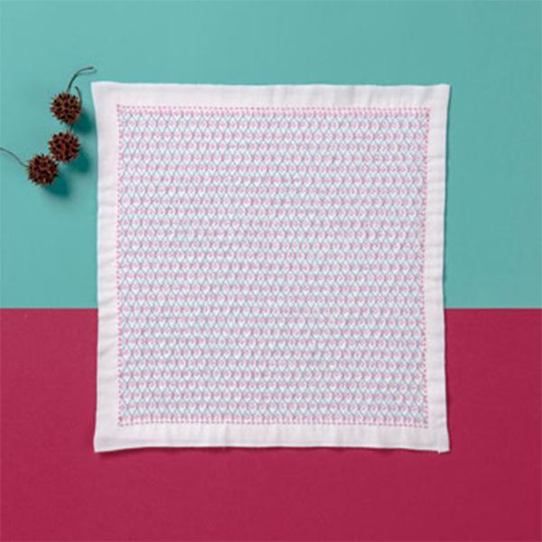 オリムパス 刺し子キット 亀甲花刺し(白) SK-352 花ふきんに刺繍ができる刺し子キットです。
