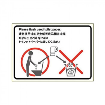 | しっかり貼れて、きれいにはがせる!ステッカーです。施設内や仮設、イベントなどの一次的表示にも便利です。増加を続ける外国人観光客は、トイレットペーパーをごみ箱に捨てるなど、 自国の習慣に基づいてトイレを使用されます。トイレットペーパーの処理方法をわかりやすく図解。英語・中国語・韓国語の表記も記載。水・光・温度変化に強く、破れにくく、屋外での使用にも適しています。-20度から+80度の環境下で使用可能です。 注意事項: ※長時間日光にあたるなど、環境によって印刷内容の退色やラベル自体の変色の可能性があります。 ※表示画像は実際と多少異なる場合がございます。 |