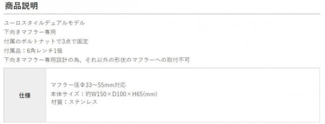 下向きマフラー専用設計の為、それ以外の形状のマフラーへの取付は不可となります。