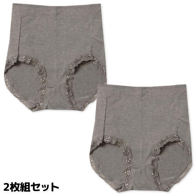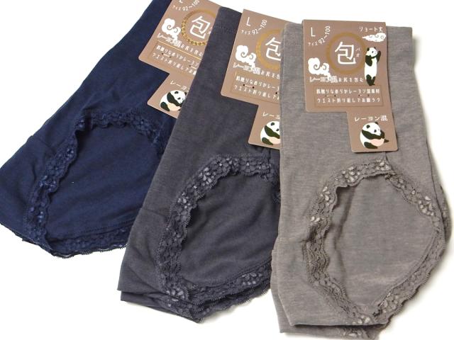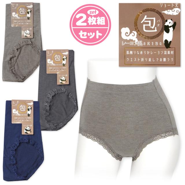【送料無料】2枚組セット 婦人 レディース ショーツ ショート丈 レーヨン混 ウエスト折り返し ストレッチ レース 肌着 下着 インナー M L LL ygf-0008【メール便対応】