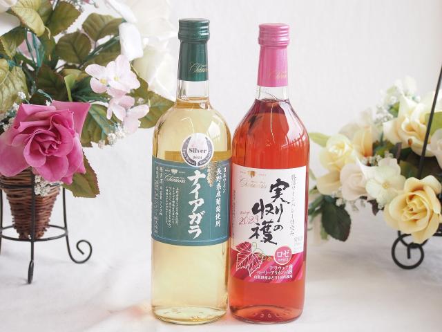 長野県産葡萄ナイアガラ種使用ワインと国産ワイン2本セット(実りの収穫 ロゼワイン やや甘口(山梨県)720mlナイアガラやや甘口白ワイン(山梨県)720ml