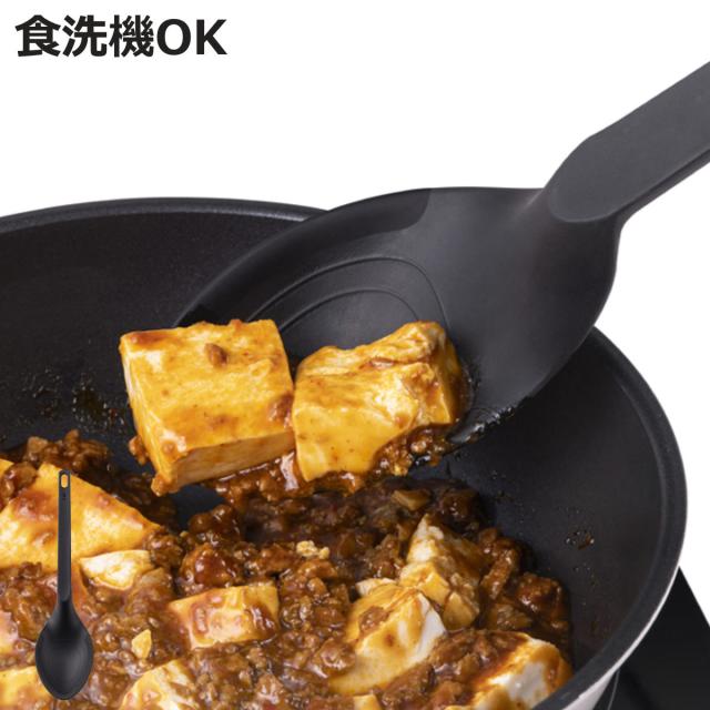 炒め物から汁ものまで使えて、こんもりよそえる程よい深さの調理スプーンです。先端はシリコーン製なので鍋を傷つけにくく、具材をきれいにこそぎ取ることができます。