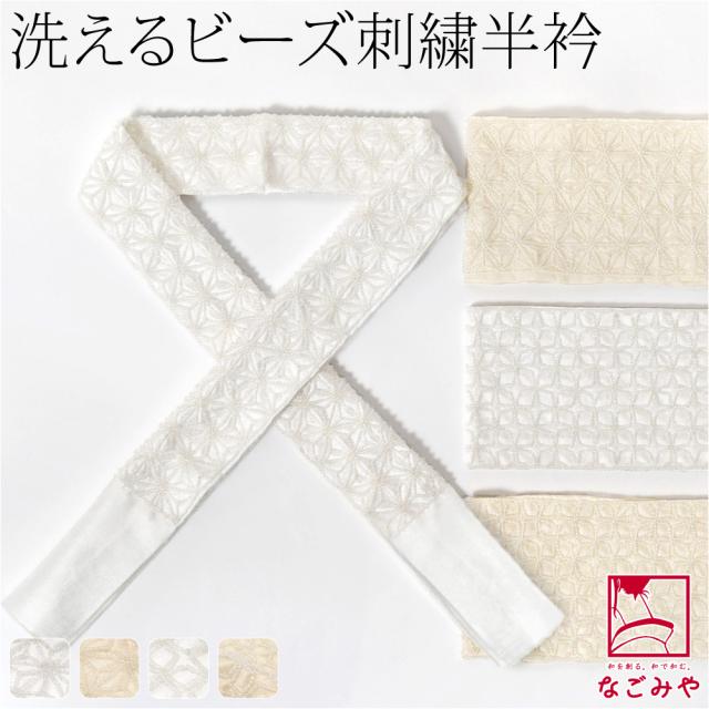 洗える 半衿 ビーズ 半襟 通年用 刺繍 ビーズ 半衿 小紋 紬 夏着物 浴衣用 綿 礼装 おしゃれ 大人 レディース 女性10024402