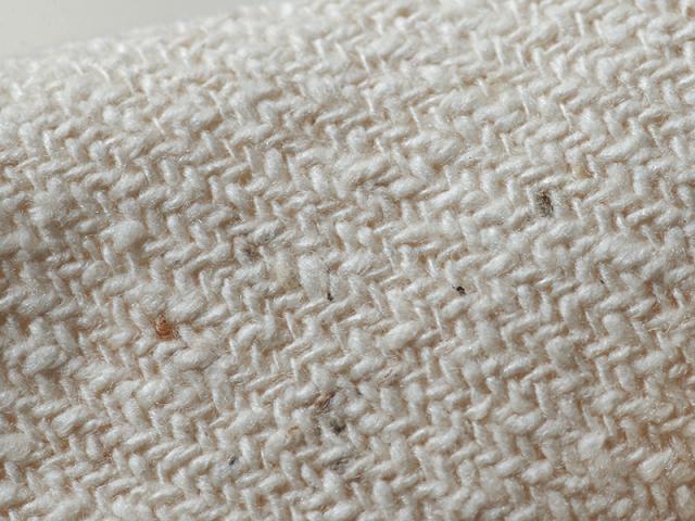 ロシア軍で、主にスリーピングシャツなどのアンダーウェアとして採用される予定だったヴィンテージファブリックがデッドストックの状態で入荷しました。シルク混紡のヴィンテージファブリックで、おそらくウールやコットンとブレンドされており、絹糸のしなやかさに加え、起毛した梳毛の柔らかさを兼ねています。天然由来の素材のナチュラルな風合いと独特のネップ感が、そのままクロスとして使うにも、シャツやバッグなどの制作素材としても雰囲気が良く優秀。自然な生成りカラーは、どんなアイテムにも応用可能な生地です。