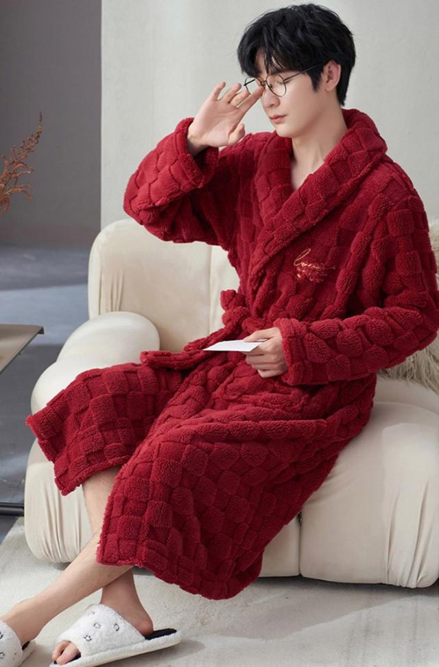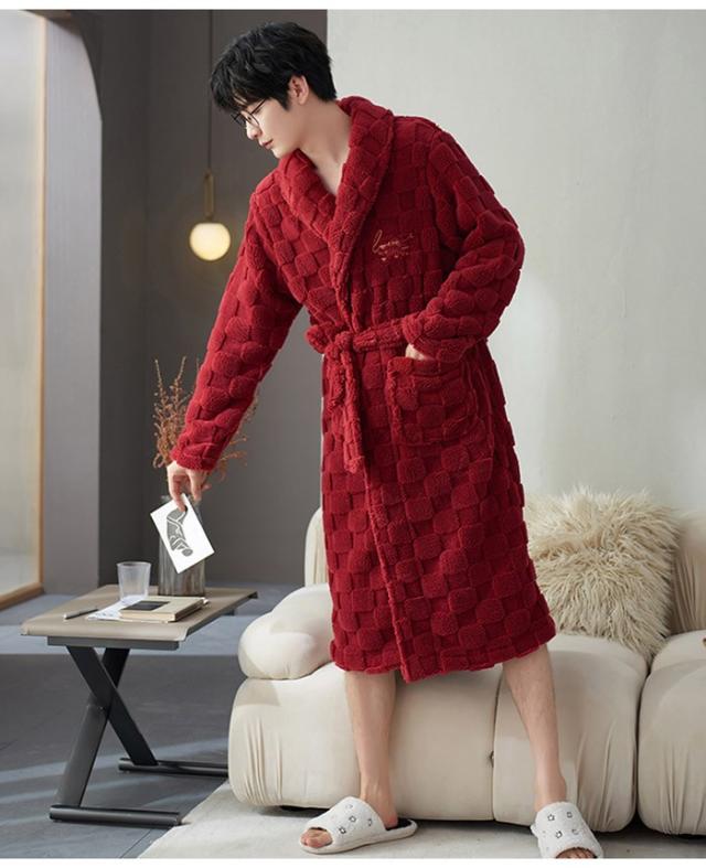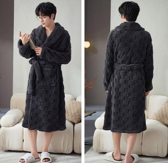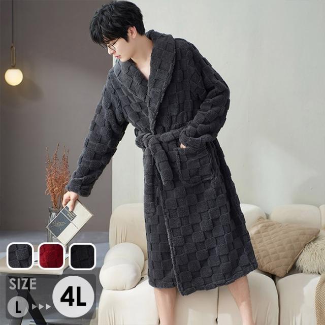 ルームウェア もこもこ バスローブ メンズ パジャマ 冬 長袖 ナイトガウン 着る毛布 前開き 寝巻き 裏起毛 部屋着 暖かい あったか モコモコ 大人用 ふわふわ 男性用 ガウン かわいい 可愛い ギフト プレゼント バレンタイン お風呂上り de119n1n1x7 de119n1