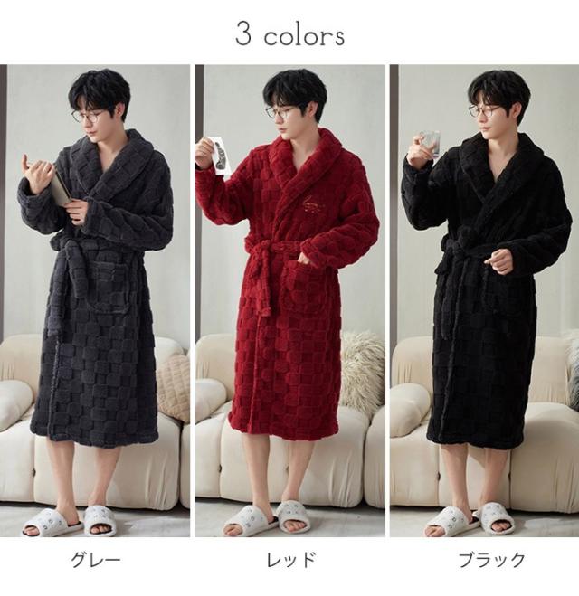 ルームウェア もこもこ バスローブ メンズ パジャマ 冬 長袖 ナイトガウン 着る毛布 前開き 寝巻き 裏起毛 部屋着 暖かい あったか モコモコ 大人用 ふわふわ 男性用 ガウン かわいい お風呂上り