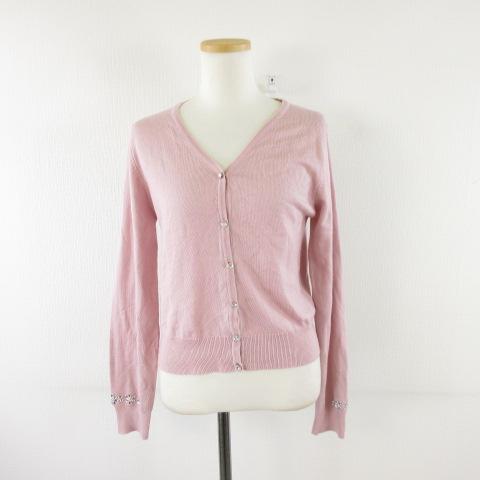 【中古】トッコ TOCCO ニットカーディガン 長袖 ストレッチ ピンク M *A297 レディース