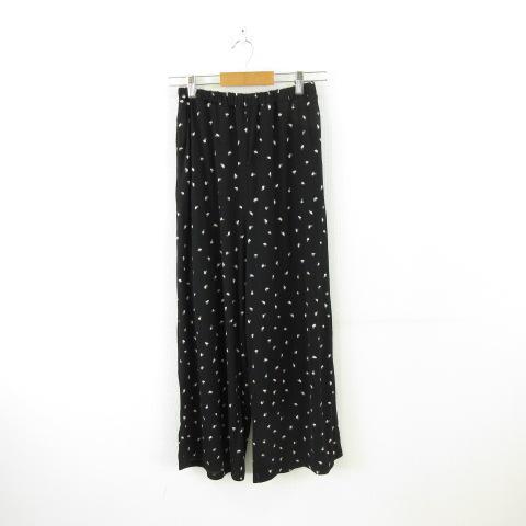 【中古】レプシィム ローリーズファーム LEPSIM LOWRYS FARM ワイドパンツ ロング ストレッチ 総柄 黒 M レディース