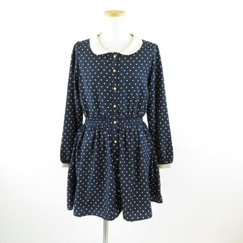 【中古】HUDSON honey シャツワンピース ミニ 長袖 ドット 紺 M *T663 レディース