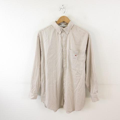 【中古】モノマート MONO-MART シャツ 長袖 チェック 刺繍 ワンポイント 茶 M *T686 メンズ