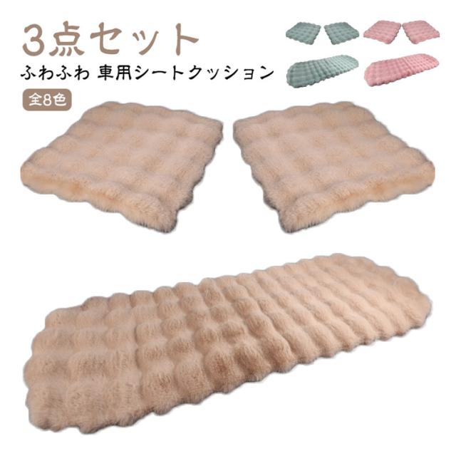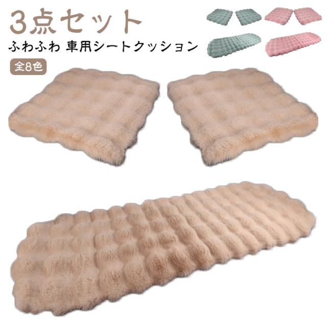 シートクッション 車用 3点セット グッズ 自動車 もこもこ ふわふわ フェイクファー 全席 かわいい あったか 車用 運転席 助手席 後部座席 オフィス ソファー 洗濯できる カーシートクッション ファー 高級感 厚手