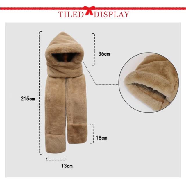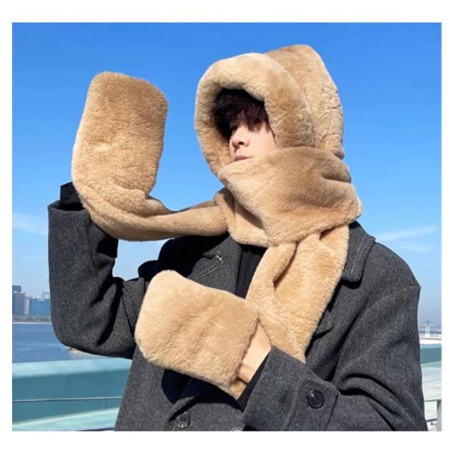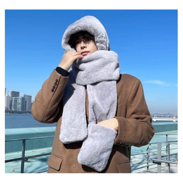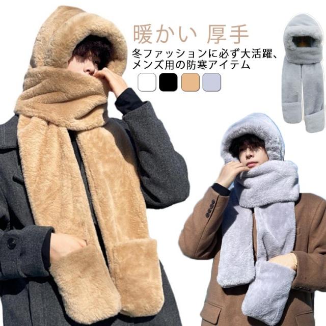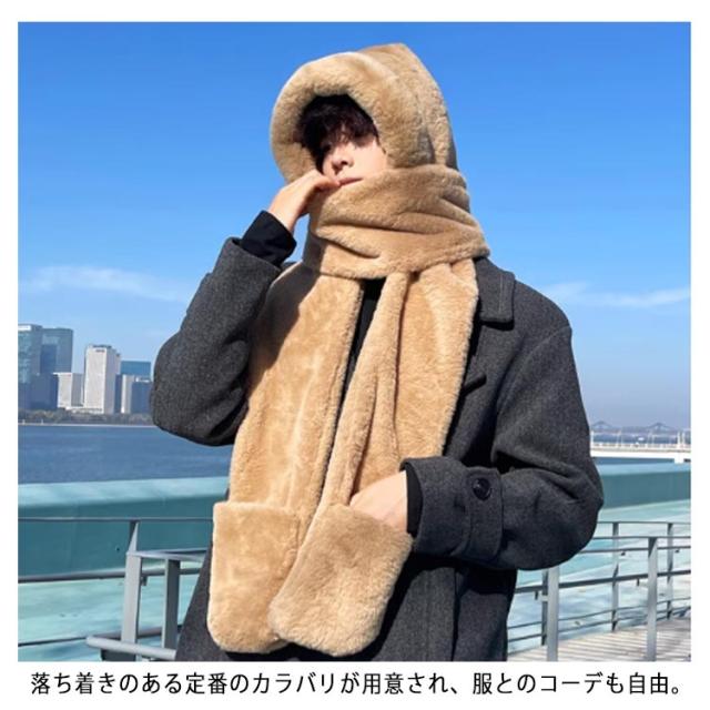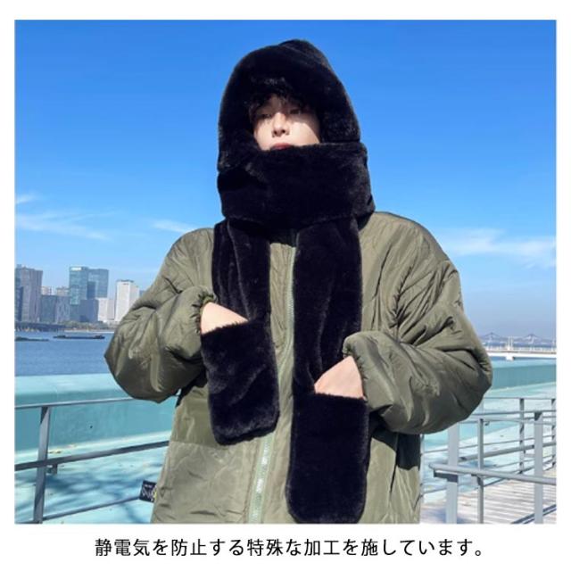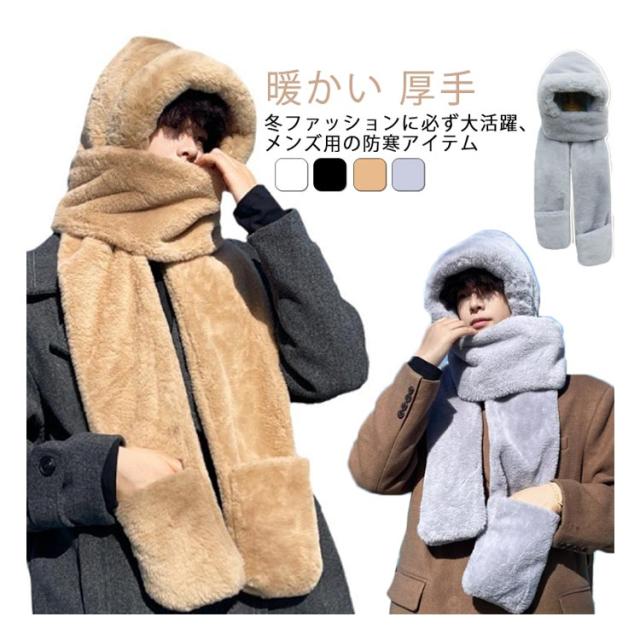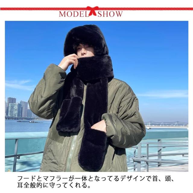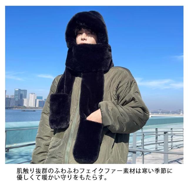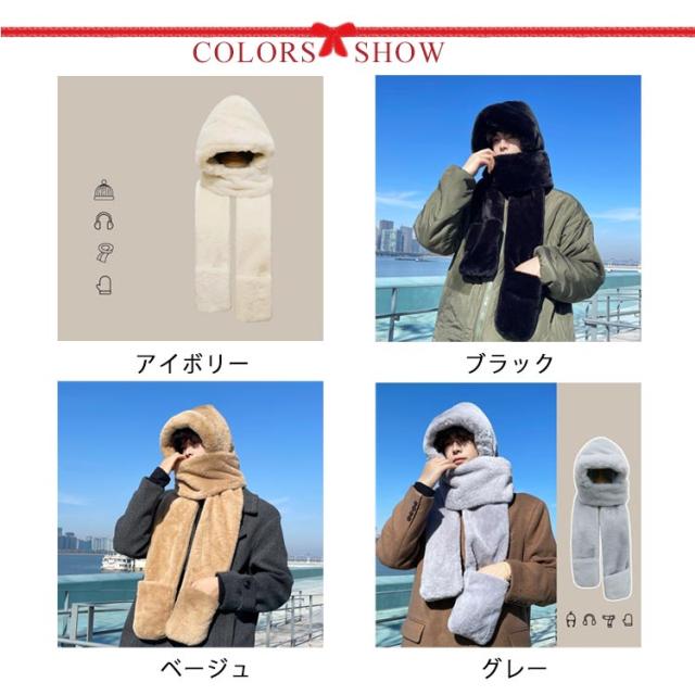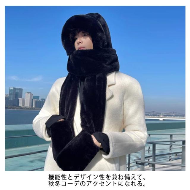メンズ マフラー 3in1 もこもこ マフラー 帽子 フェイクファー ふわふわ レディース 冬 厚手 フリース フード付き ネックウォーマー ストール 防寒 可愛い 防寒着 無地 暖かい 手袋 防風 手洗い かわいい 冬用 防寒対策 軽い お出かけ 通学 ギフト プレゼント 送料無料