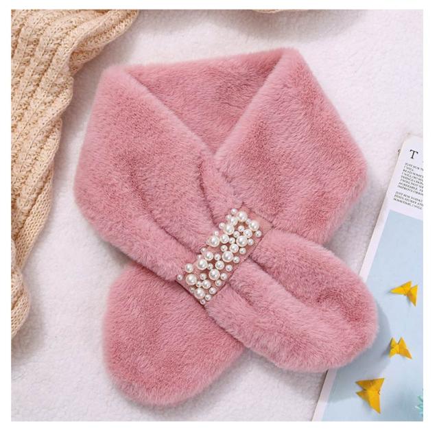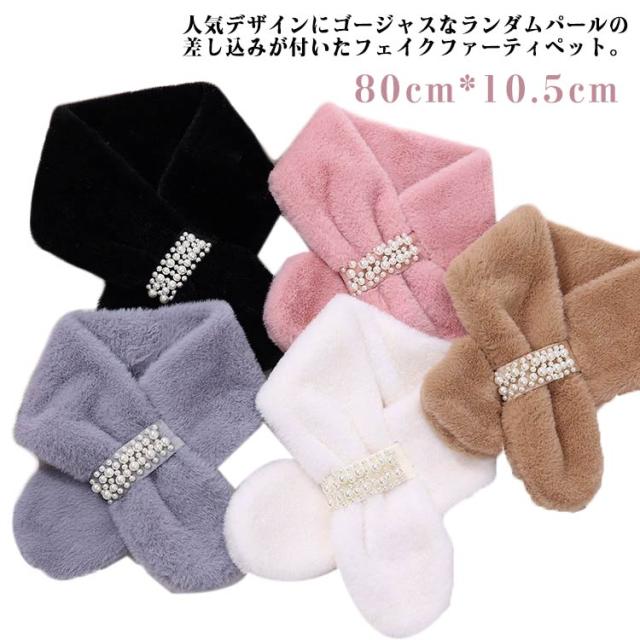 パーティー パールビジュー付きフェイクファーティペット 連パール 高見え ファーマフラー エレガント カジュアル フォーマル モード ファーマフラー シンプル おしゃれ防寒 女の子 ティペット ファーティペット フェイクファー