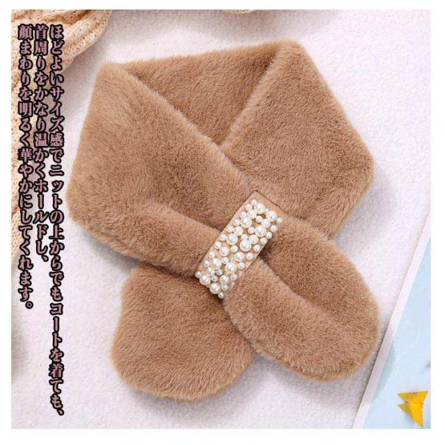 ファーマフラー パーティー ファーティペット 連パール パールビジュー付きフェイクファーティペット エレガント シンプル 高見え モード カジュアル フォーマル おしゃれ防寒 女の子 ティペット ファーマフラー フェイクファー