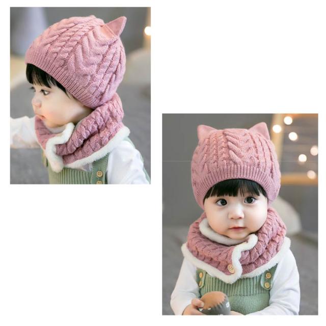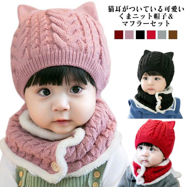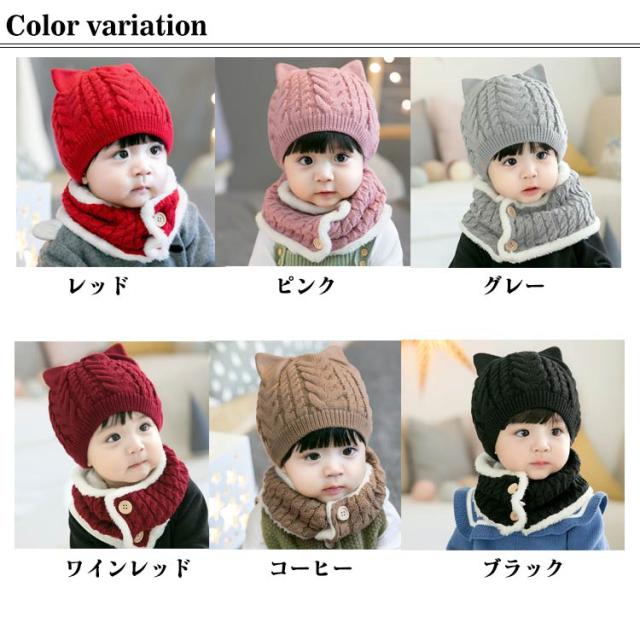 耳付きニット帽&ネックウォーマーセット 帽子 出産祝い 耳あて マフラー キッズ 耳付き赤ちゃん 耳付きニット帽&ネックウォーマーセット あったか 防寒 ニット帽 ベビー ニット帽 ちくちくしない ネックウォーマー 男の子 女の子 子供用 スヌード 誕生日 ギフト クリスマス