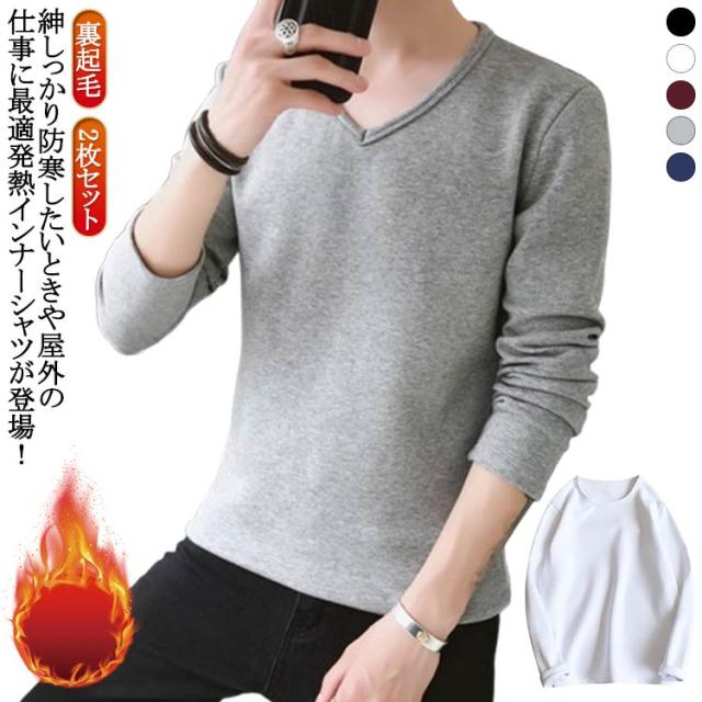 2枚セット!裏起毛 厚手 Tシャツ 秋冬 極暖 裏起毛 Vネック ロンT あったかインナー インナーシャツ 肌着 アンダーウェア ストレッチ ヒートテック 裏起毛 クルーネック 丸首 防寒 長袖 保温 2枚セット!裏起毛 暖かい 発熱 インナー 保暖内衣 冬用
