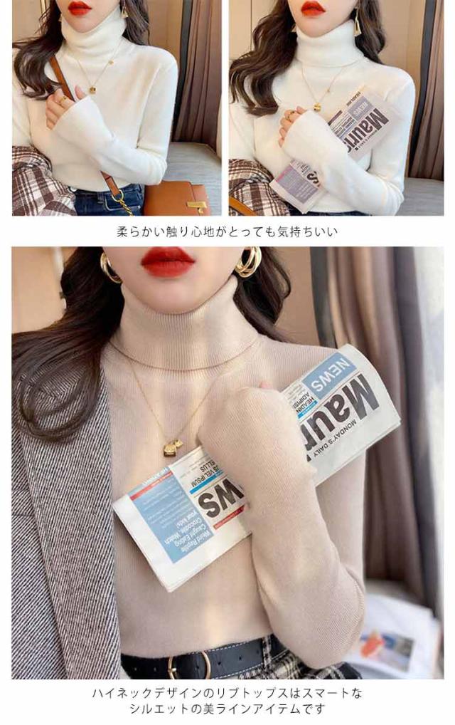 | 全7色選べる 着心地抜群のニットセーターです。 柔らかい触り心地がとっても気持ちいい ハイネックデザインのリブトップスはスマートなシルエットの美ラインアイテムです。 すっきり一枚着てのお出かけはもちろん、ジャケットやシャツを羽織ってインナーとして使える。 | |