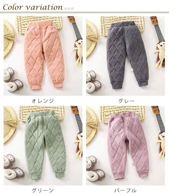 | キルティングデザインパンツ インナーとしてもホームウェアとしても着用可能です。 男の子にも女の子にも使える普遍的なスタイル ウエストはゴム仕様、着脱便利 | |