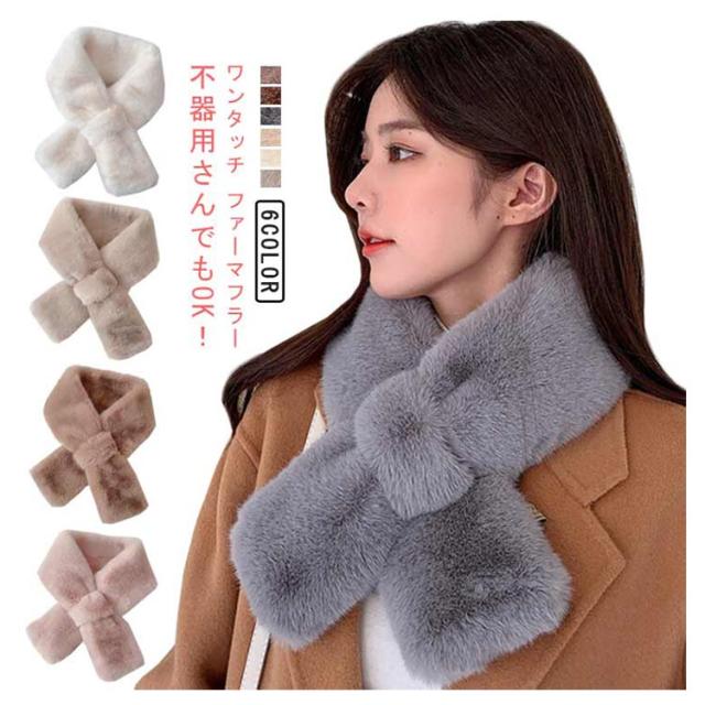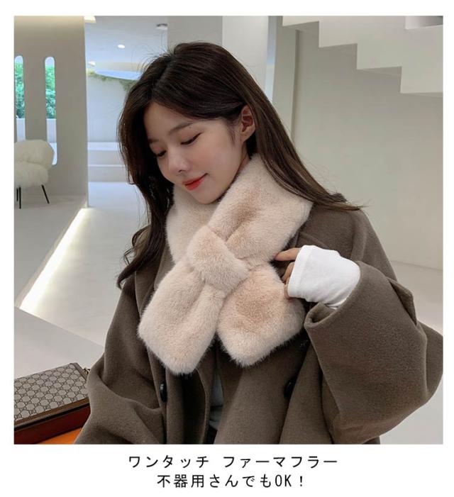 | ワンタッチ ファーマフラー 不器用さんでもOK! ループ付きだから、片側を通すだけのワンタッチタイプ。 秋冬コーデの主役になる存在感。 顔周りがパッと華やぐファーマフラー。 | |