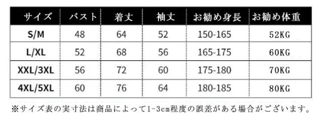 | サイズ | S/M L/XL 2XL/3XL 4XL/5XL |