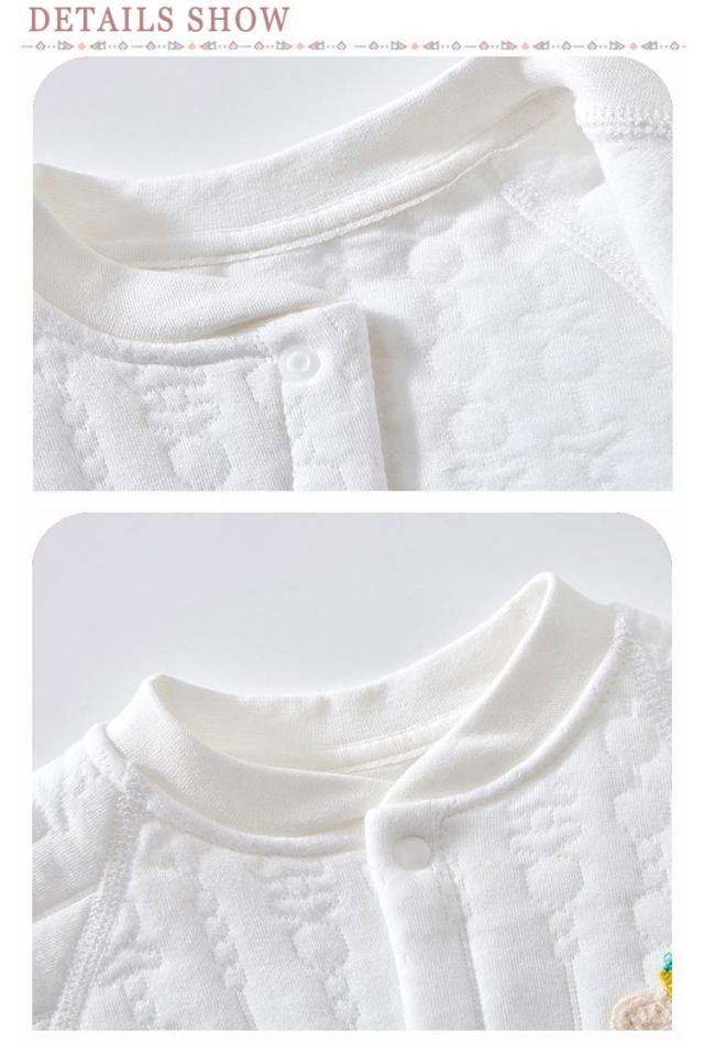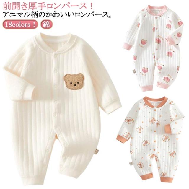 | 18colors!前開き厚手ロンパース!アニマル柄のかわいいロンパース。 厚手な3重コットン素材で保温性が高く、これからの寒い季節にぴったり。 キルトの中綿が暖かい空気を含んで、暖かさを維持。 ふわふわ柔らかい肌触りと、暖かみある素材感。 吸水性に優れていますので、汗をかいても快適・保温もばっちり。 お着替えがしやすい前開きデザイン。 スナップボタンなのでおむつ替えも楽々できます。 | |