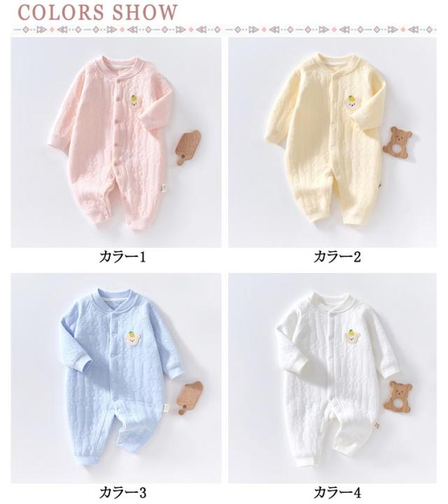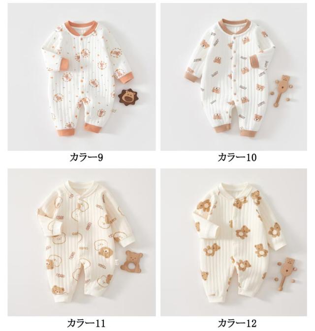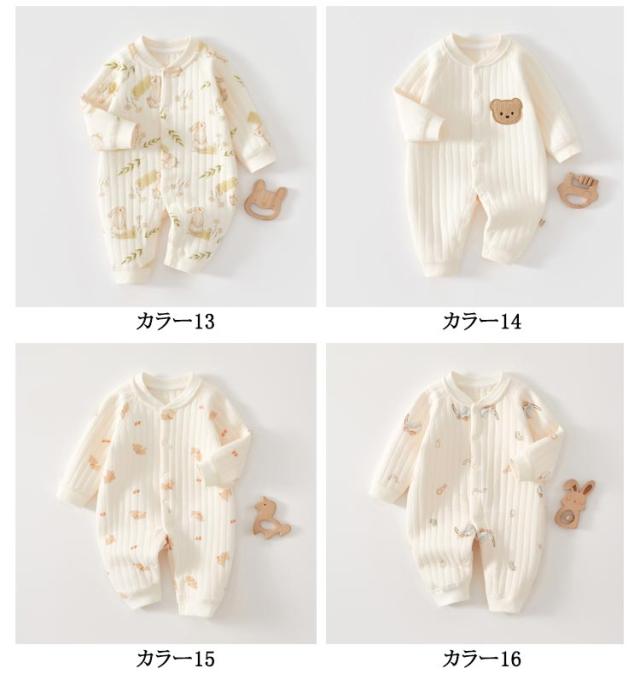 ロンパース 長袖 厚手 ベビー服 男の子 女の子 赤ちゃん 中綿 キルト カバーオール 3重 綿 コットン あったか 新生児服 前開き くま ウサギ おしゃれ かわいい 59 66 73 80 90 ルームウェア 部屋着 パジャマ 新生児 幼児 春 秋 冬 出産祝い ギフト プレゼント 送料無料