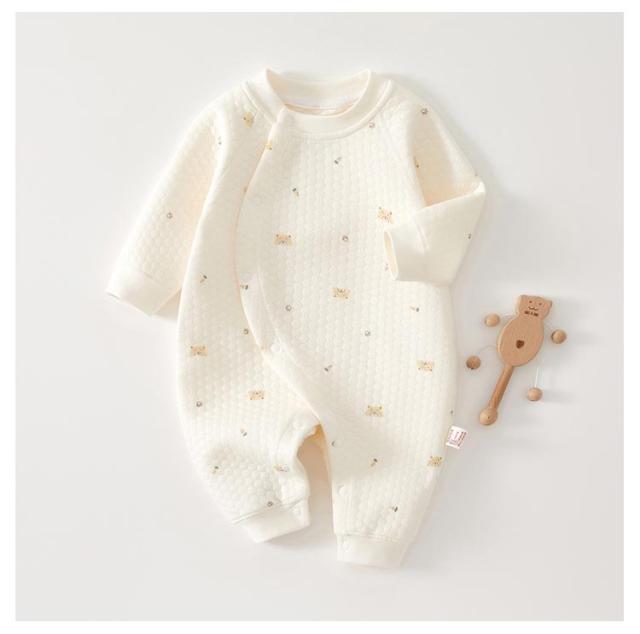 ロンパース 長袖 厚手 ベビー服 男の子 女の子 赤ちゃん 中綿 キルト カバーオール 3重 綿 コットン あったか 新生児服 前開き くま ウサギ おしゃれ かわいい 59 66 73 80 90 ルームウェア 部屋着 パジャマ 新生児 幼児 春 秋 冬 出産祝い ギフト プレゼント 送料無料